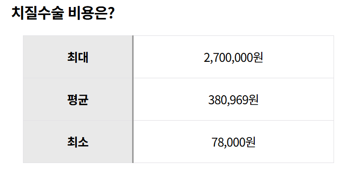 2021년 4월 기준 치질 수술의 평균 비용은 38,969이다, 하지만 비용은 병원과 수술 방법에 따라 크게 차이가 날 수 있다.